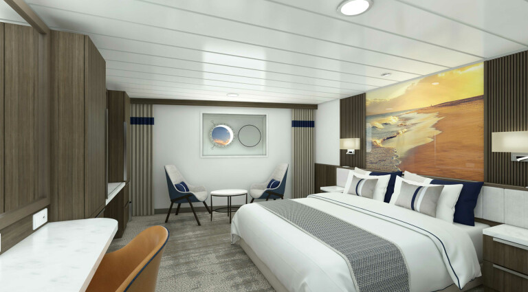 Die vier Junior Suiten bieten von ihrer Lage auf Deck 7 aus beeindruckende Ausblicke. Wenn Sie gerade nicht an einer Anlandung teilnehmen, können Sie im separaten Wohnbereich der Suite entspannen oder vom privaten Balkon aus die vorbeiziehende Welt beobachten.