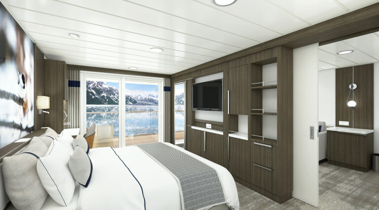Die 17 Balkonkabinen der Kategorie B sind die Standardkategorie. Viele davon verfügen über Verbindungstüren, was sie ideal für Familien oder Gruppen macht. Diese Kabinen befinden sich im vorderen und hinteren Bereich von Deck 4 und 6.