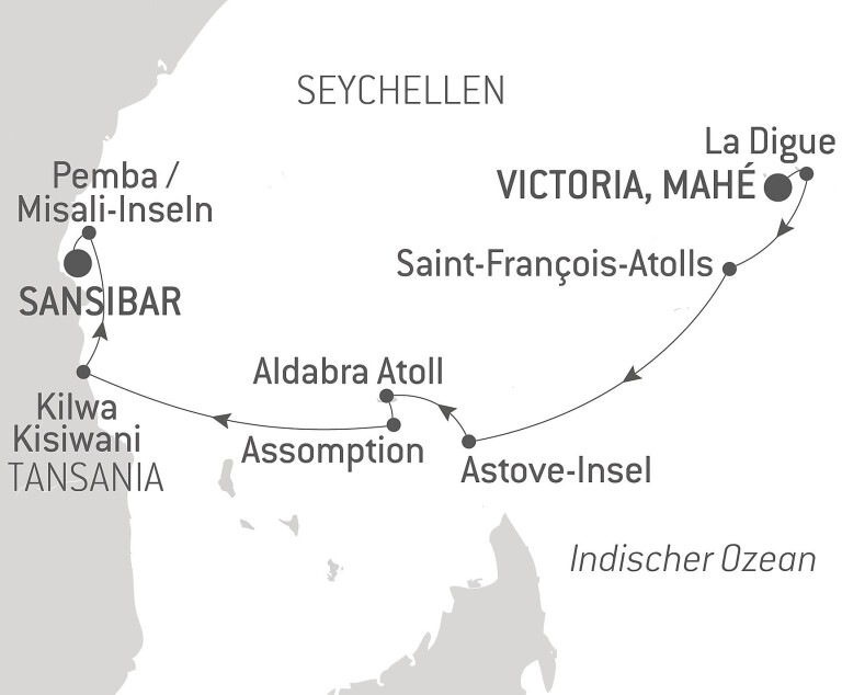 Das riesige Aldabra-Atoll im Südwesten der Seychellen gilt als eine der ursprünglichsten Regionen der Erde. Hier ist die weltgrößte Kolonie von Riesenschildkröten zuhause, ebenso wie zahlreiche Vogelarten wie beispielsweise die Bindenfregattvögel. Das kreisförmige, leicht erhöhte Atoll gehört zum UNESCO-Welterbe. Seine vier Koralleninseln sind durch enge Passagen voneinander getrennten und umschließen eine niedrige Lagune. Freuen Sie sich auf ein spektakuläres Naturerlebnis. Entdecken Sie dieses Atoll mit türkisblauem Wasser, das von Mangroven und feinen Sandstränden gesäumt ist, ein ökologisches Wunder ohne Gleichen und ein ästhetisch perfekter biologischer Schatz.