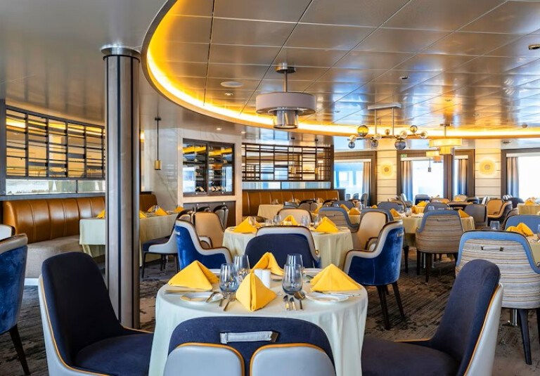 Im Bordrestaurant genießen Sie internationale Gerichte, die frisch zubereitet und von regionalen Zutaten inspiriert sind. Die Küche berücksichtigt selbstverständlich auch vegetarische und spezielle Diäten. Der lichtdurchflutete Speisesaal schafft eine angenehme, ungezwungene Atmosphäre mit weitem Blick auf das Meer – ein kulinarischer Genuss, der Ihre Expedition perfekt ergänzt. Snacks, Tee und Kaffee stehen rund um die Uhr zur Verfügung. Beim Captain’s Farewell erwarten Sie Aperitifs, Canapés und ein stilvolles 3-Gänge-Menü – ein krönender Abschluss Ihrer Reise.